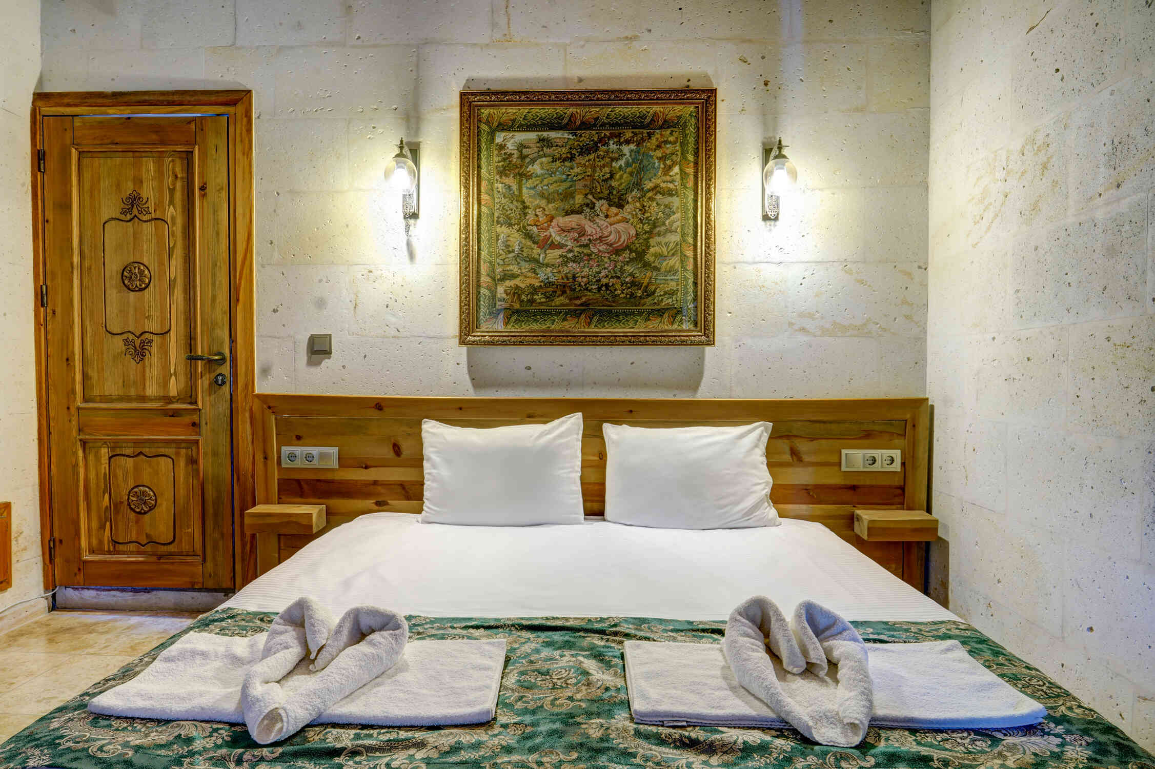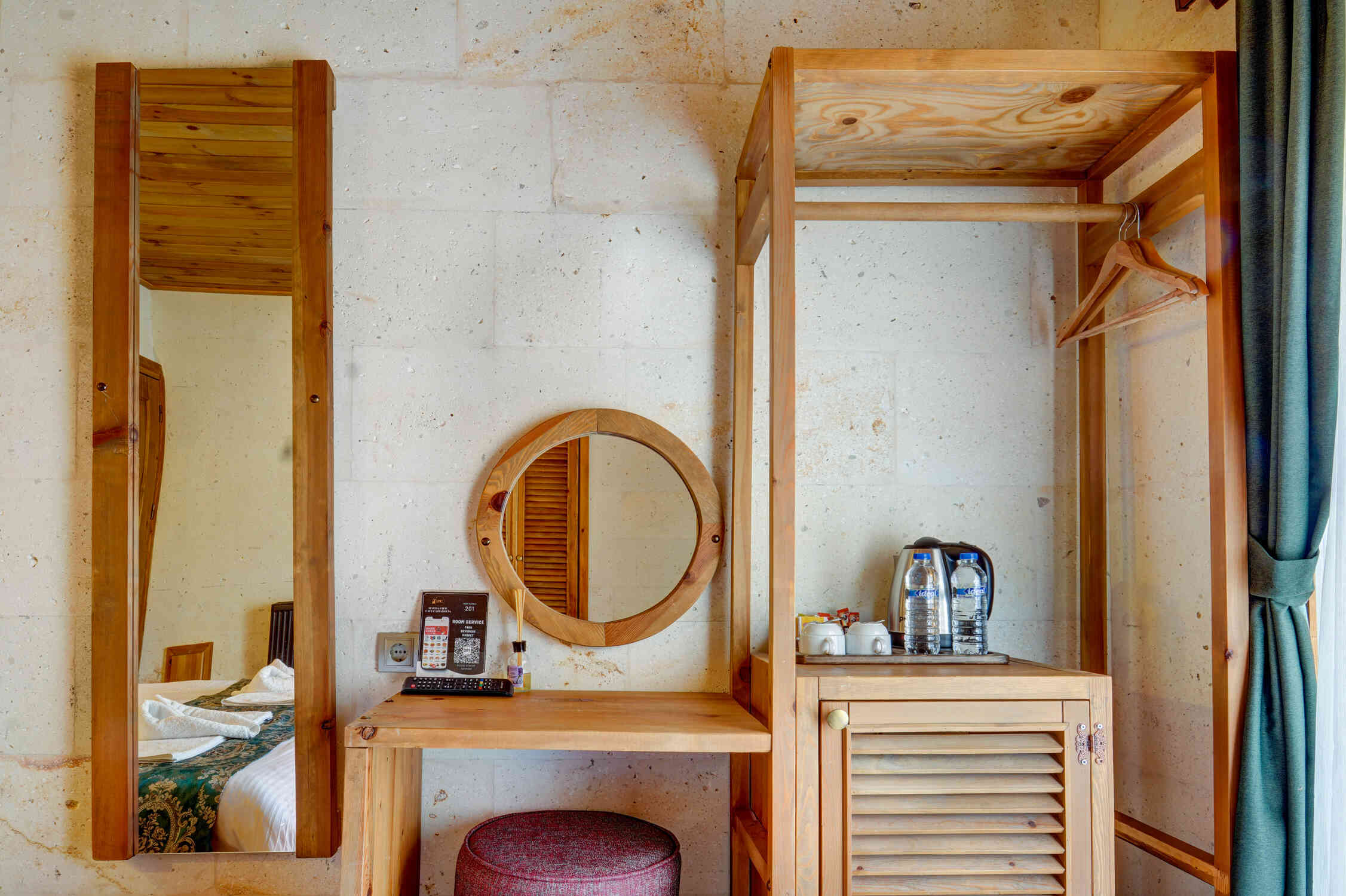 Enjoy stunning panoramic views of Cappadocia’s unique landscapes and the famous hot air balloons from the comfort of your private balcony in this cozy room. Perfect for couples or solo travelers seeking a relaxing escape in the heart of nature.